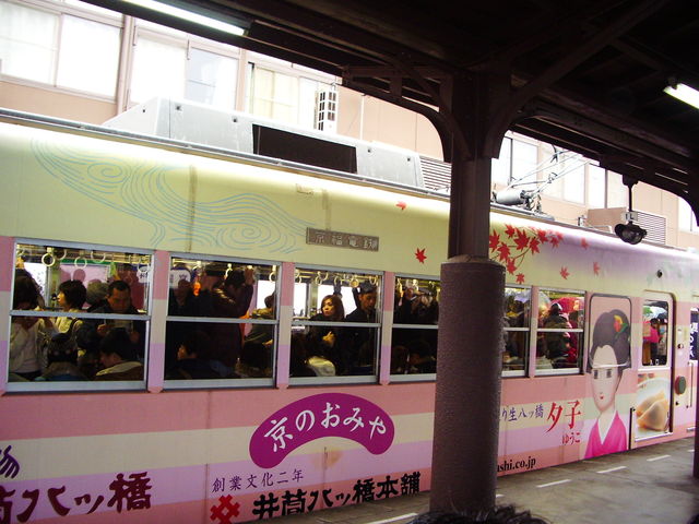 嵐電(らんでん)こと、京福電鉄。一部は路面電車になっている。