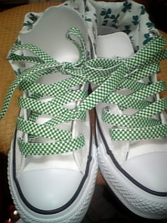 緑色にラメの入った紐か、この白&緑の市松模様か散々迷って実際に見本のコンバースの前で比べたりもし、市松の方がしっくりきたから、こっちに決定