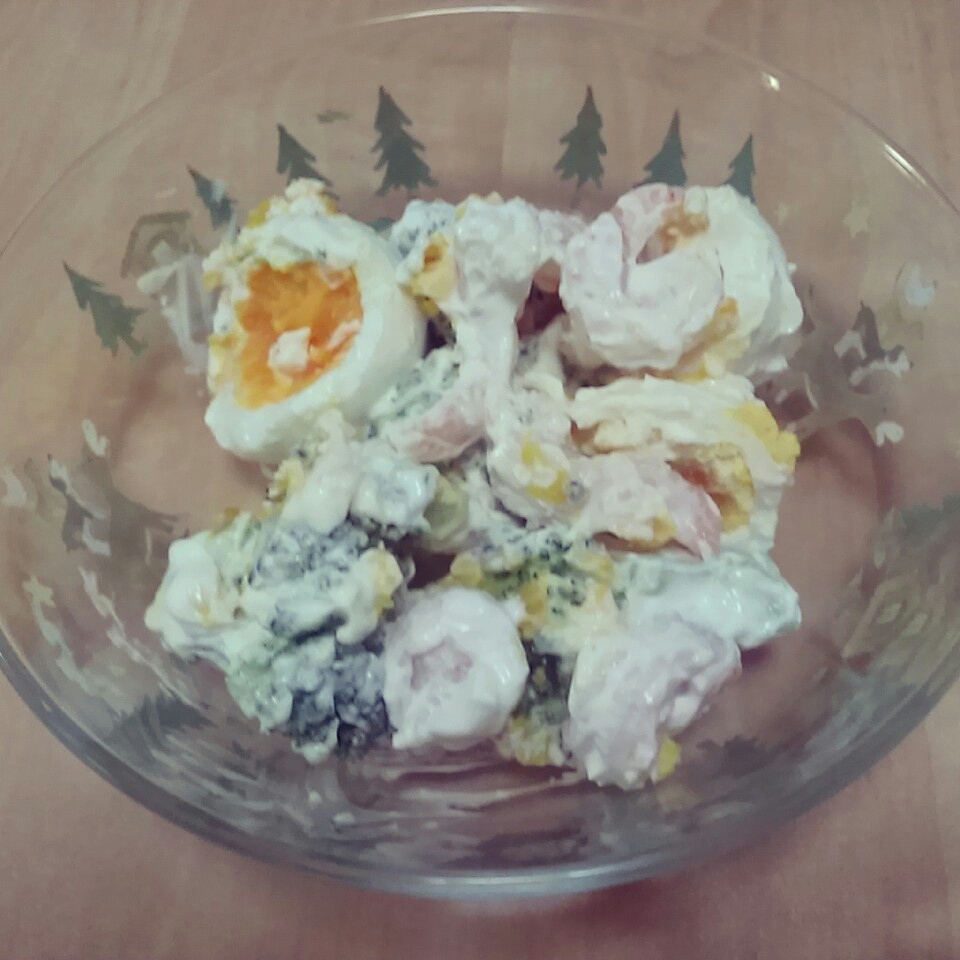 お肉は鶏胸肉です。大根カレーにはこのお肉が一番エビと卵のサラダ